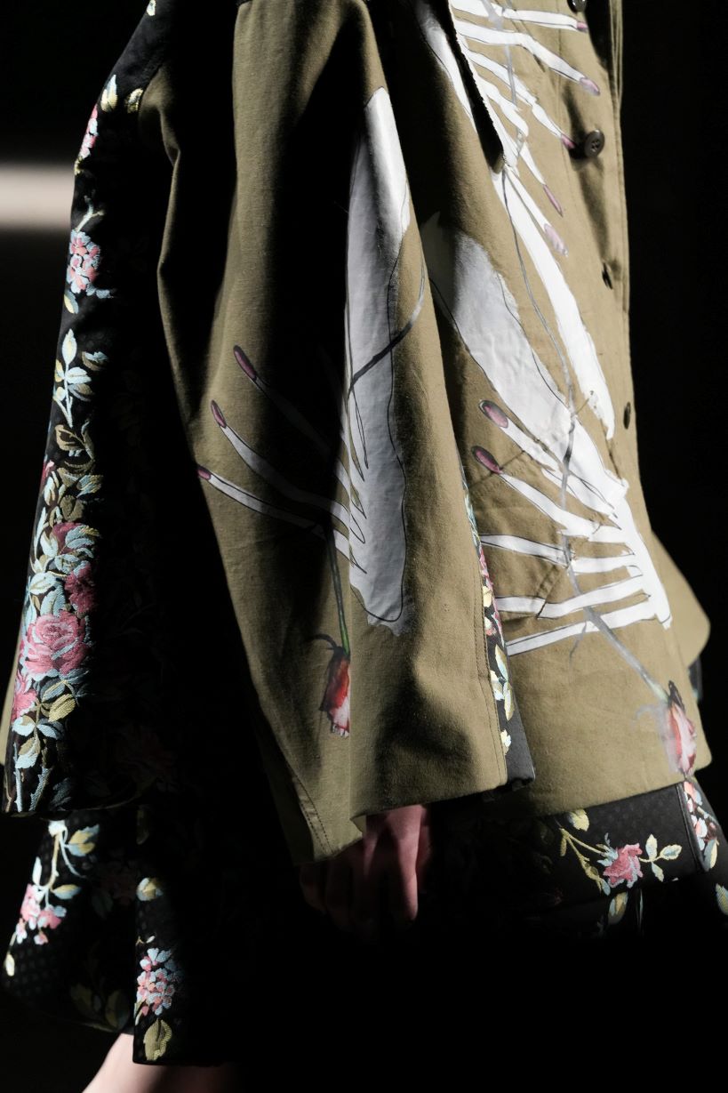 Although the collection concentrated mostly on the female silhouette, Marras did not overlook men’s fashions. Bomber jackets with lovely floral embroidery, worn with casual slacks, demonstrate how men’s fashion can blend classic forms with decorative elements. Marras aggressively incorporates flowery motifs into men’s clothing, breaking trends and reinventing the image of male elegance.