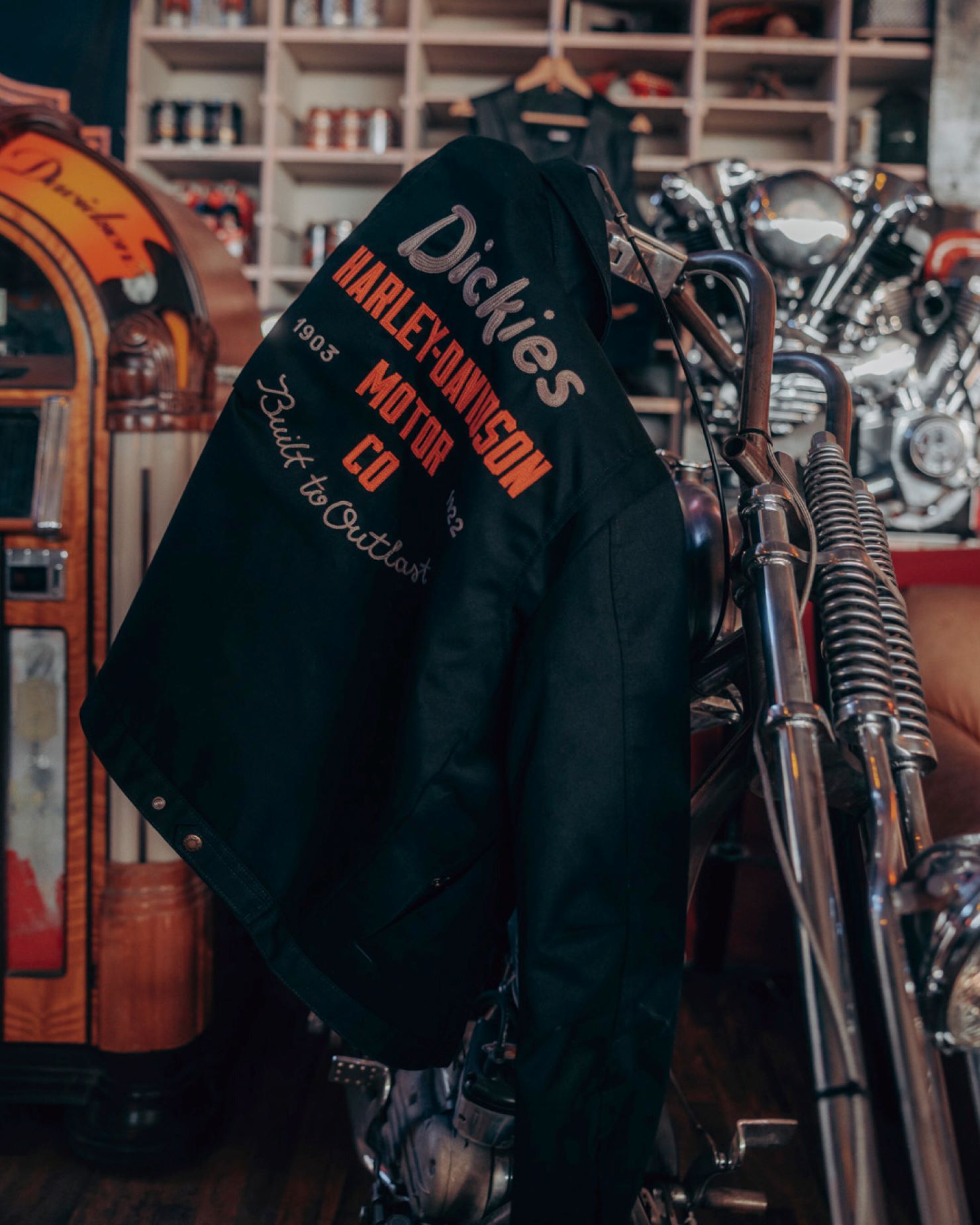 Inspired by America’s industrial heritage, the collection brings together Dickies’ trusted durability with Harley-Davidson’s legacy of rebellion. The result is a lineup built for those who work hard, ride far, and leave their mark along the way.