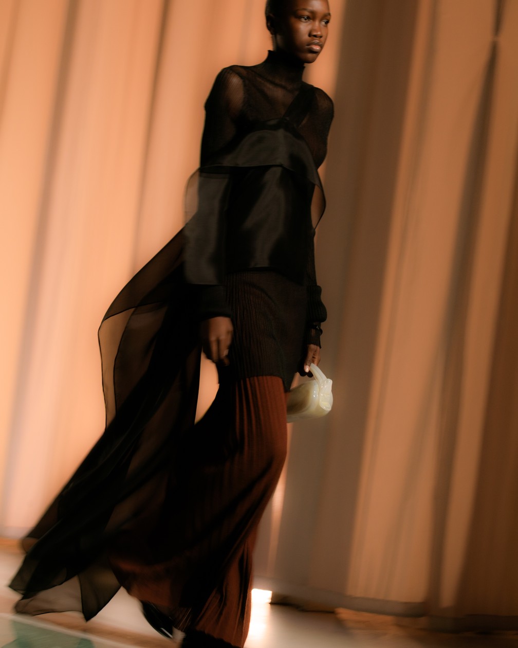 Sculptural thinking, exaggerated proportions, and architectural textures characterize Ashlynn Park’s collection during New York Fashion Week. On the other hand, Zankov demonstrates emotional warmth. Fluffy mohair sets and playful argiles in shades of chartreuse and merlot are reminiscent of sunlight after winter. This is especially noticeable in the sparkling sequins, which add optimism and dynamism.