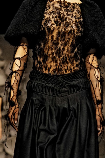 Romantic and contemporary aesthetics, lace, satin, tulle, jacquard, metallic threads and feathers were combined into dynamic, luxurious designs, demanding to be felt. The Erdem collection totally conquered my heart.