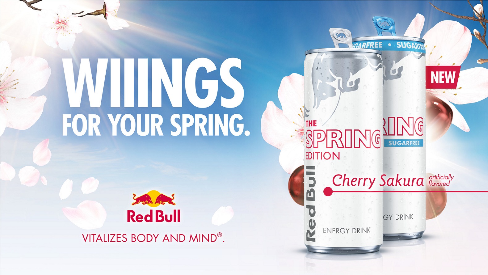 Packaged in white-colored 8.4 fl oz and 12 fl oz individual cans with accents of cherry-red lettering, Red Bull Spring Edition Cherry Sakura contains the same functional ingredients as Red Bull Energy Drink, but with a new, unique taste. It will be sold at retailers nationwide while supplies last.