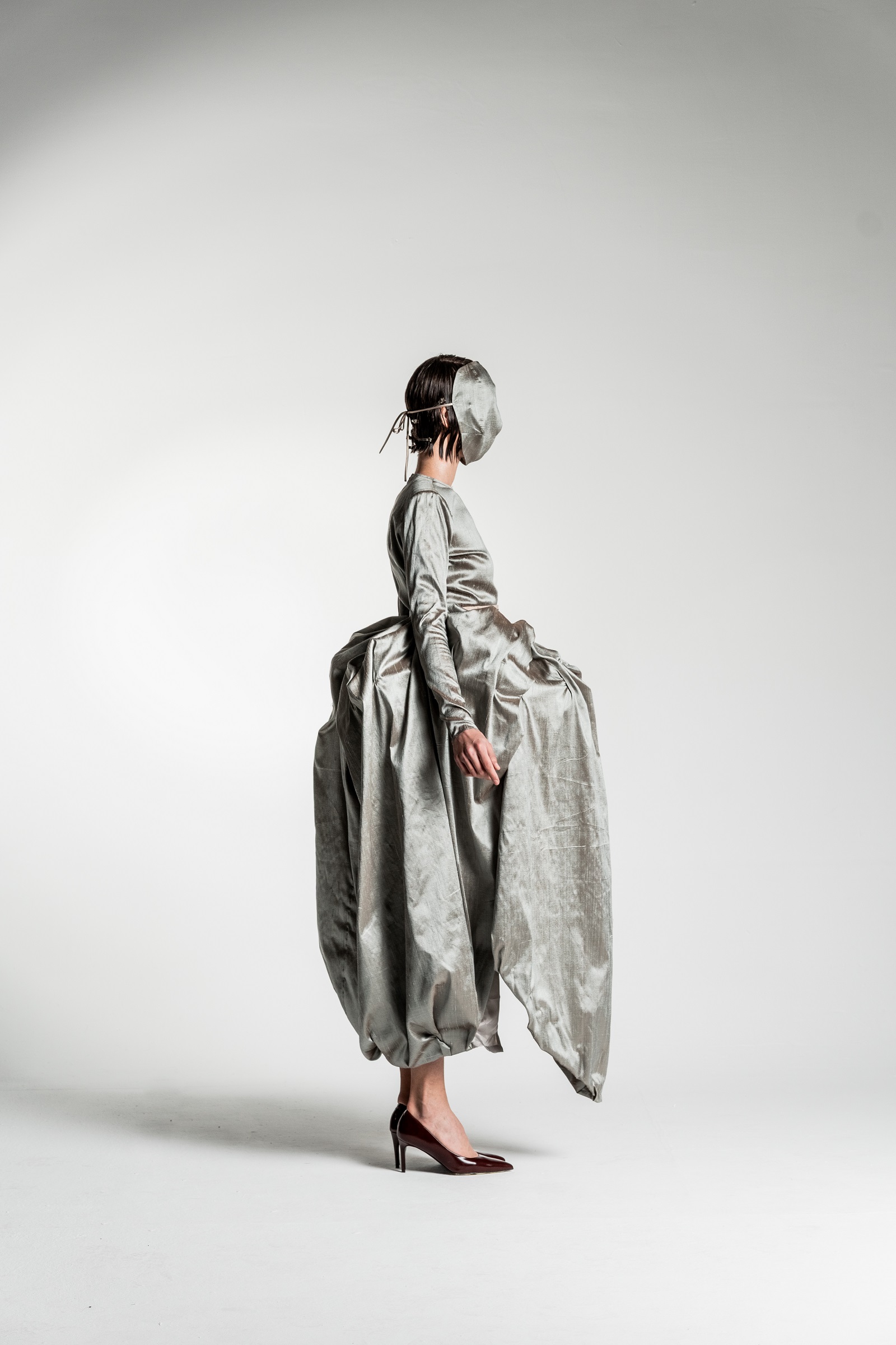 The entire collection is made of silk, a fabric that is very close to my heart. In the future, I would like to focus largely on such fine fabrics. I have immense respect for them and greatly value their character, which is why I want to continue creating designs with them, perhaps pieces that are more practical and suitable for everyday wear, while still maintaining this aesthetic.